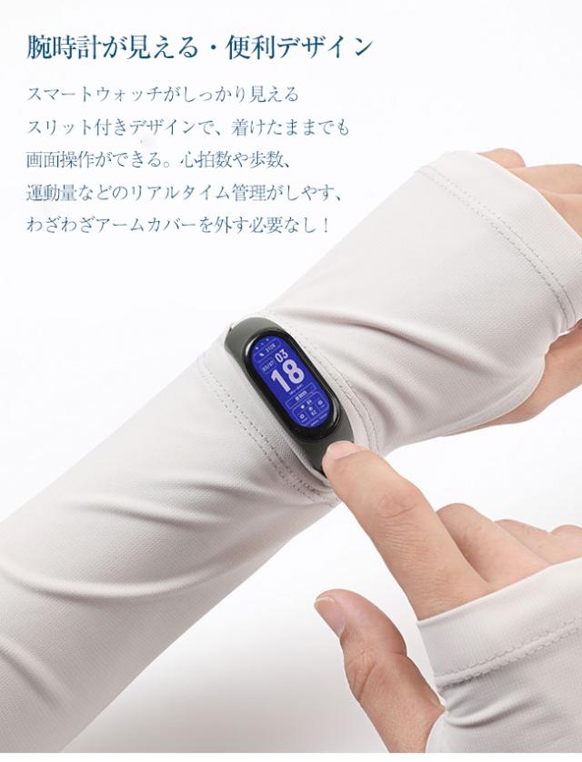 【腕時計が見える・便利デザイン】スマートウォッチがしっかり見えるスリット付きデザインで、着けたままでも画面操作ができる。心拍数や歩数、運動量などのリアルタイム管理がしやす、わざわざアームカバーを外す必要なし!