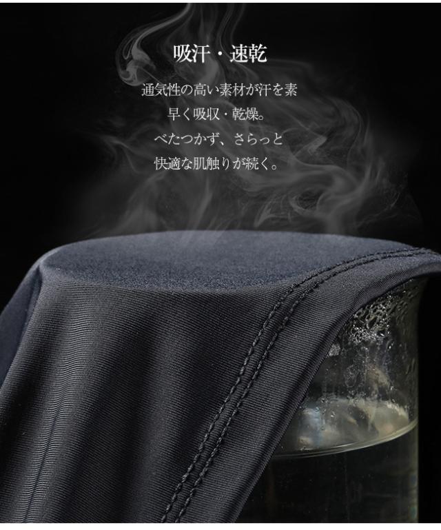 【吸汗・速乾】通気性の高い素材が汗を素早く吸収・乾燥。べたつかず、さらっと快適な肌触りが続く。