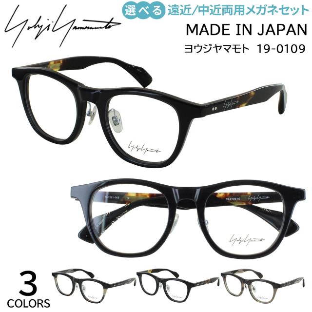 遠近両用メガネ メンズ ヨウジヤマモト 日本製 ウェリントン アセテート クリングス鼻パッド 老眼鏡 遠近両用 中近両用 境目なし 累進多焦点 UVカット 歪みの少ない非球面レンズ シニアグラス YOHJI YAMAMOTO 19-0109 3カラー展開 正規品 送料無料