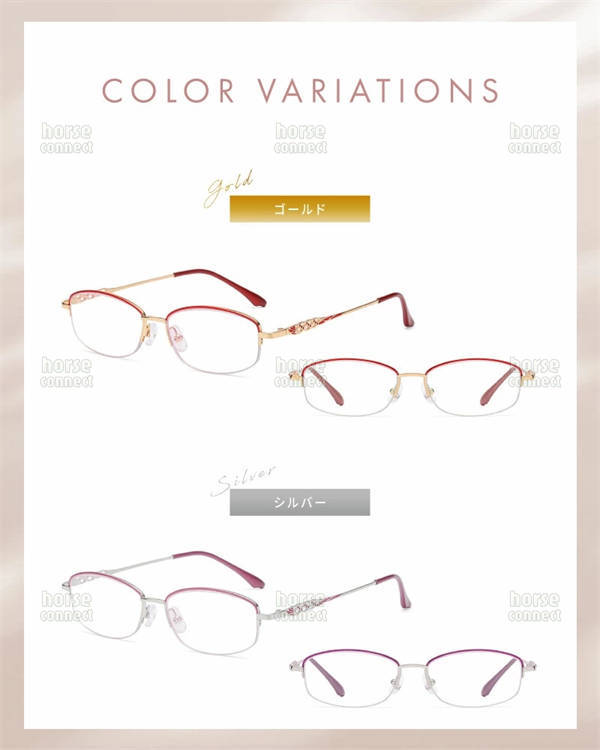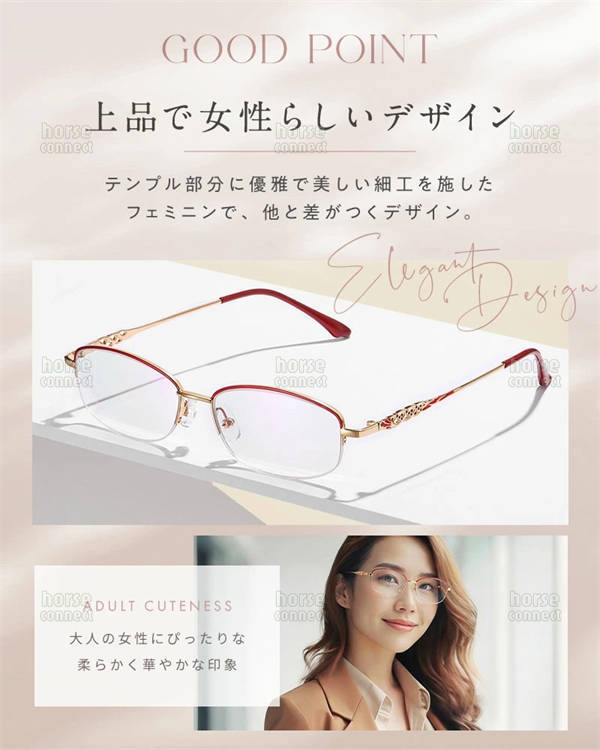 テンプル部分に優雅で美しい細工を施した、フェミニンで他と差がつくデザイン。