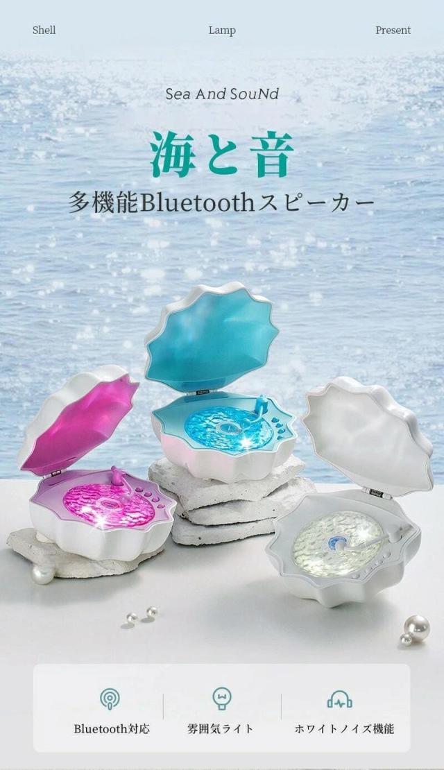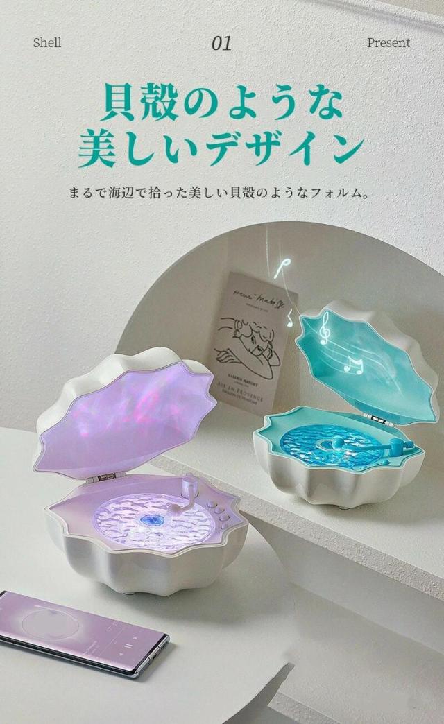 Bluetoothスピーカー 貝殻型 シェルデザイン レコードプレーヤー風 レトロスピーカー ワイヤレス 可愛い インテリアスピーカー 雰囲気ライト