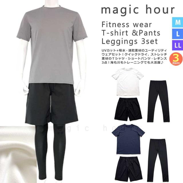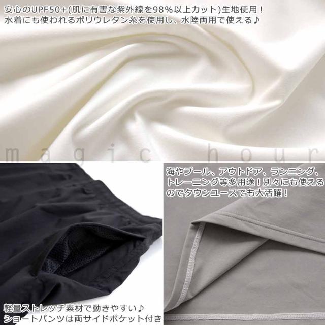 シンプルさが使いやすいメンズユーティリティ水陸両用ウェア。ストレッチ素材のハーフパンツ、半袖Tシャツ、レギンスの便利な3点セット! 伸縮性に優れたUVカット素材を使用し、海や川などの水辺からランニングやフィットネスなどのスポーツ、タウンユースまで幅広く使いやすい♪ 軽量で動きやすいクイックドライ生地(速乾)を使用し、水陸両用でお使いいただけます。別々でも使いやすい無地デザイン! ハーフパンツはポケット、ウエスト調節紐付きでストレッチ素材♪ジムや水中歩行、フットサルなどのクラブやスポーツ時にも。 |