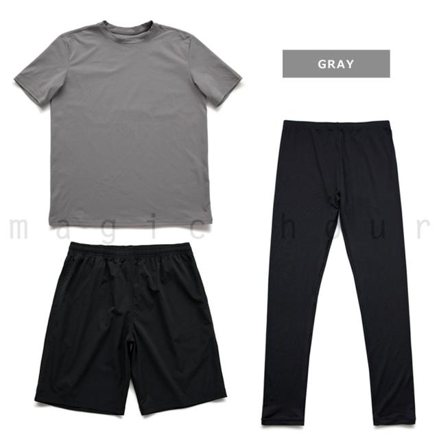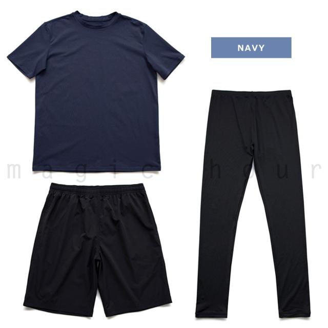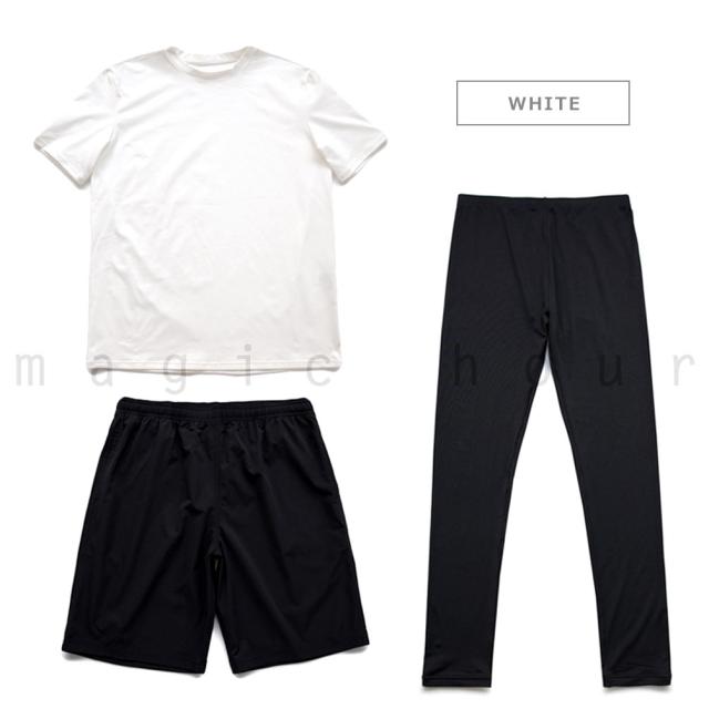 ◆ サーフパンツ メンズ 水着 3点 セット ラッシュガード レギンス 速乾 Tシャツ 海パン サーフトランクス 水陸両用 無地 海水浴 プール ランニング ラッシュパンツ ◆