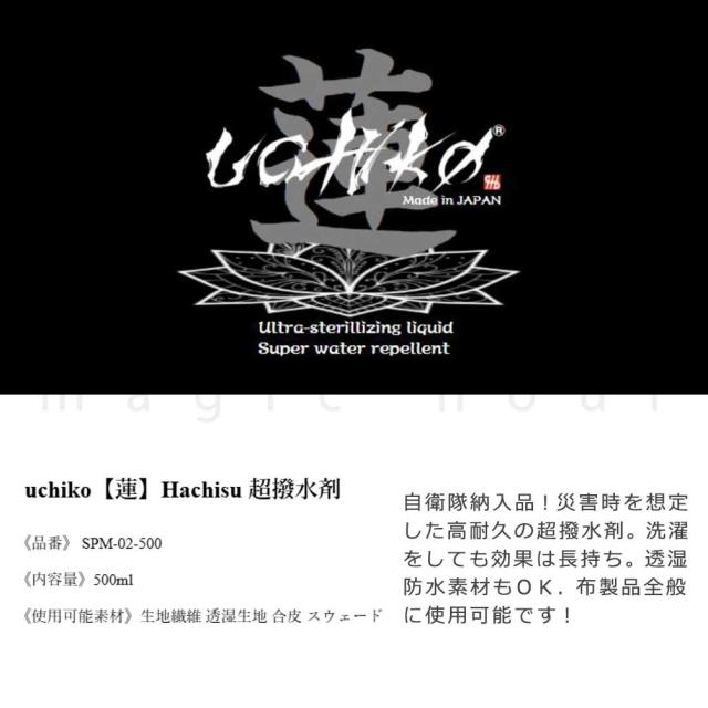 超強力 撥水スプレー 透湿 防水生地 ゴアテックス対応 スプレー UCHIKO ウチコ 蓮 hachisu はちす 500ml レインウェア スキー スノボ 登山 ウエア 高性能 はっ水