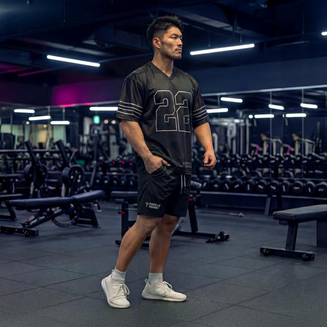 アメフトの力強さを日常に。街でもジムでも使いやすい、存在感のあるフットボールシャツです。ポリエステル100%の速乾ドライ素材を採用し、汗をかいても快適。リラックスフィットで体型を拾いにくく、肩まわりは動きやすい設計。デニム、カーゴ、ショーツとも好相性で、普段着からトレーニングまで幅広く活躍します。