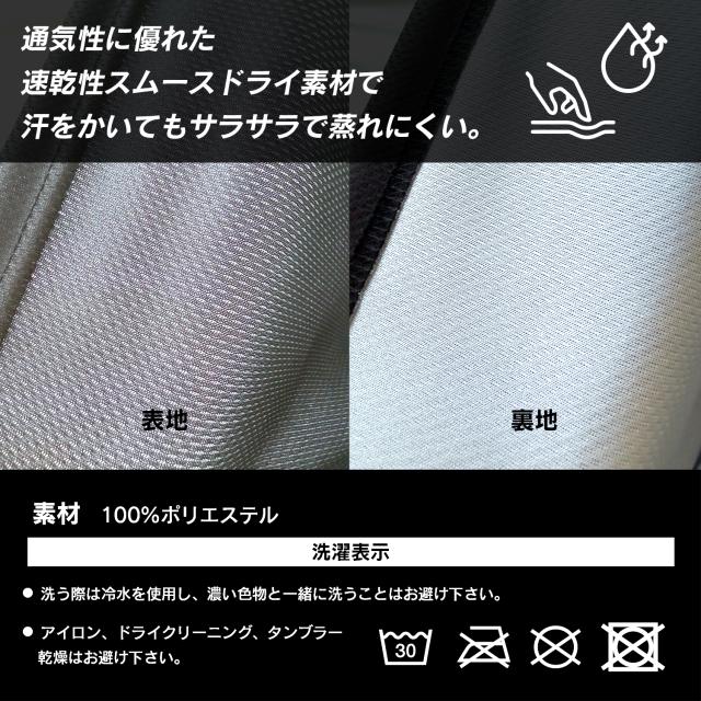 素材は耐久性、耐熱性、速乾性、撥水性に優れたシワになりにくい特徴をもつポリエステルを採用。汗や水滴を気にせずお使いいただけるため、天候に左右されず持ち運びが可能です。