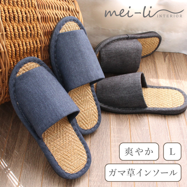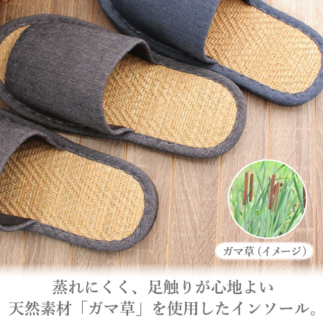 スリッパ 2足セット 夏 ガマ草 畳 イ草 自然素材 底が拭ける 室内 涼しい L サイズ 送料無料