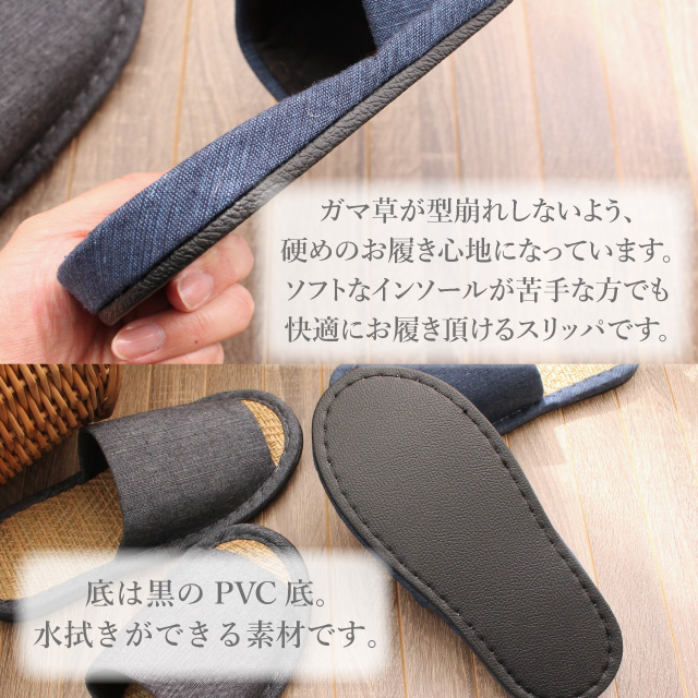 【素材】甲部分:ポリエステル/中敷き:ガマ草・麻/底部:PVC