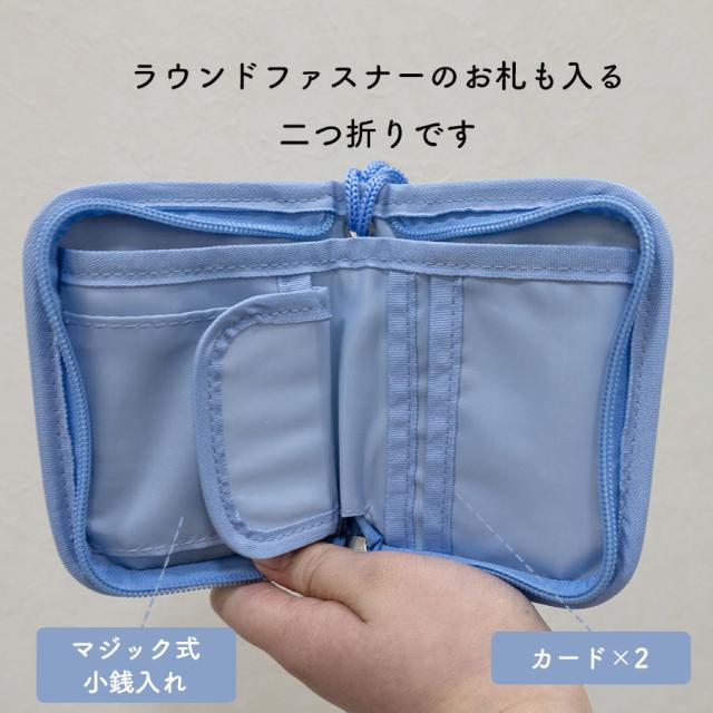ラウンドファスナー開閉。小銭入れはマジック式なので、不慣れなお子様でも使いやすくなっています。子供の手のサイズに合わせたコンパクトサイズで園児?小学生にお勧めです。