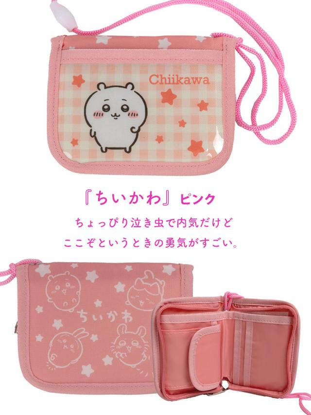 漫画・アニメで人気のちいかわ人気キャラクターのネックストラップ付二つ折り財布です。首から下げて使うことができるので安心!ストラップは外すこともできます。