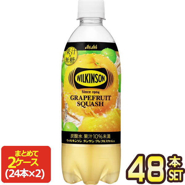 アサヒ ウィルキンソン タンサン グレフルスカッシュ 490mlPET×48本[24本×2箱]【3〜4営業日以内に出荷】[送料無料] 炭酸 グレープフルーツ レモン マスカット