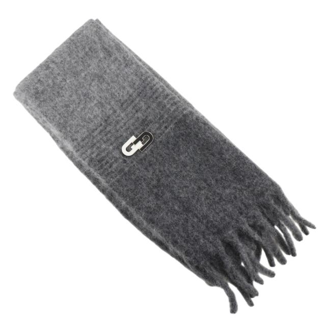 Furla フルラ グラデーション ブローチ付き ウール グレー マフラー レディース 【中古】