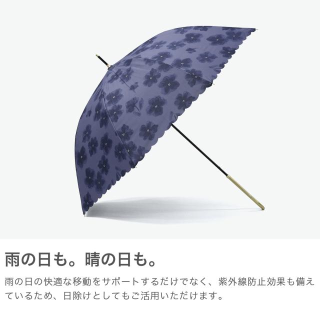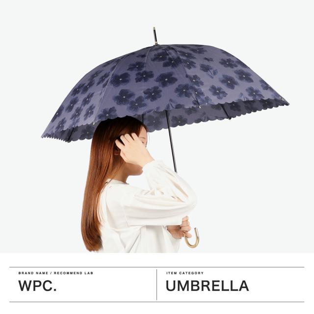 ダブリュピーシー 長傘 Wpc. レディース 傘 晴雨兼用 雨傘 大きめ 日傘 ワンタッチ ジャンプ式 おしゃれ ブランド 花柄 フラワー 水彩風 スカラップ かわいい きれいめ 58cm 水彩フラワー 可愛い 晴雨兼用傘 ジャンプ傘 上品 カサ 日焼け対策 UVカット UV 紫外線 紫外線カット 紫外線対策 ワンタッチオープン 親骨58cm 8本骨 UV対策 紫外線防止 熱中症対策 暑さ対策 日焼け防止 日除け 日よけ UVCUT お洒落 オシャレ 女性 花 水彩 シンプル フェミニン 大人可愛い ギフト プレゼント 誕生日 通勤 通学 旅行 トラベル お出かけ 紺 白 ホワイト