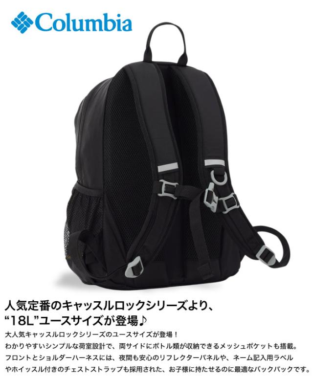 Columbia コロンビア キャッスルロックユース18Lバックパック リュックサック 撥水 防汚 子供 子ども 小学生 通学 遠足 旅行 コンパクト ハイキング アウトドア 野外活動 メンズ レディース キッズ ジュニア ホイッスル付き ネームラベル付き PU8705