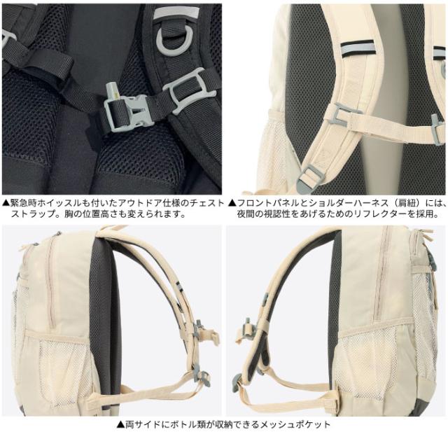 フロントパネルとショルダーハーネスにはリフレクターを装備し、夜間や薄暗い場所での視認性にも配慮。