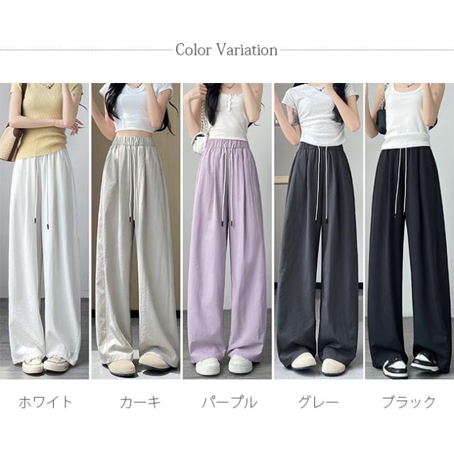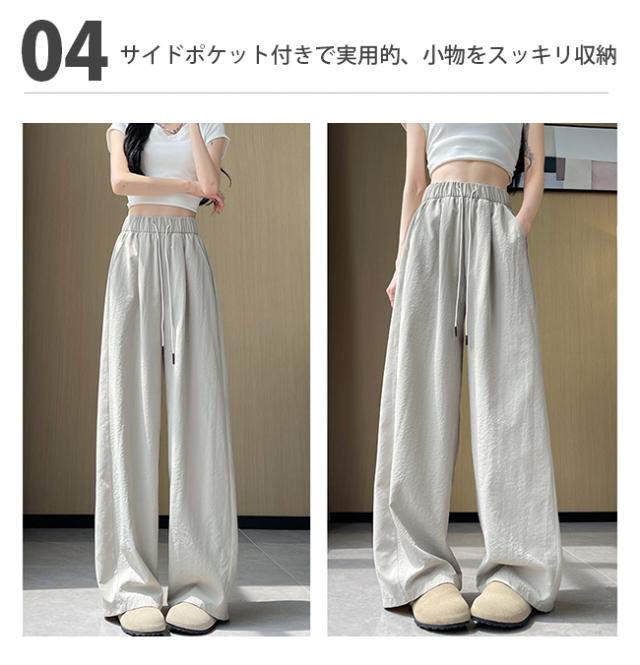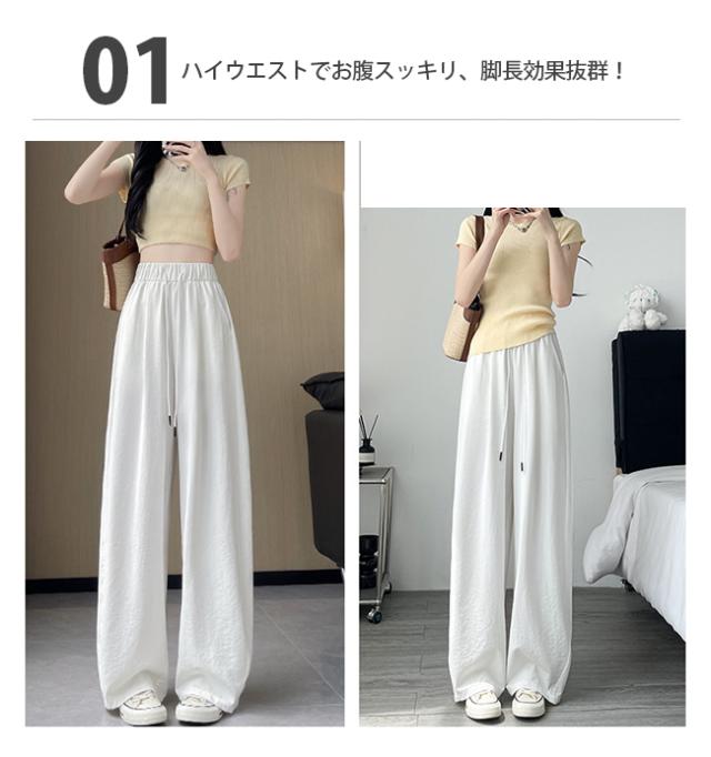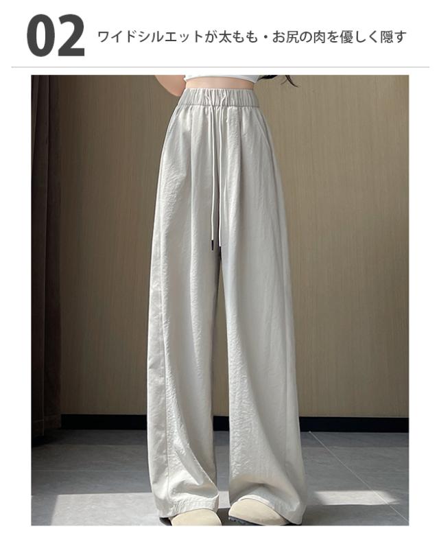 ワイドパンツ レディース スッキリ見せ 速乾 脚長効果 薄手 体型カバー カジュアル 涼しい