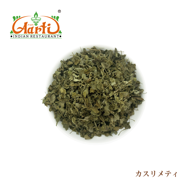 マメ科の植物の葉を乾燥させたもの。ヒンディ語でカスーリ・メティ/Kasoori Methi 。種はフェネグリークです。