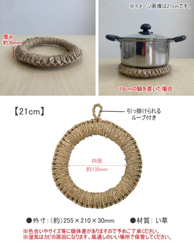 イ草鍋敷 21cm 1個 送料無料 鍋敷き なべしき 鍋しき 鍋敷 イ草 い草 いぐさ 丸型 輪 丸輪 ドーナツ型 シンプル おしゃれ 鍋置き ポット やかん 壁掛け テーブル キッチン雑貨 キッチン小物 インテリア 佐藤金属興業 SALUS