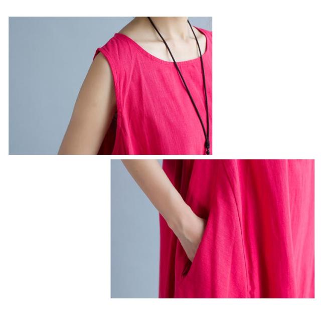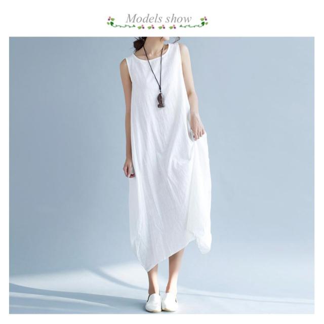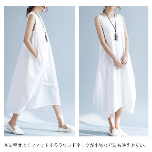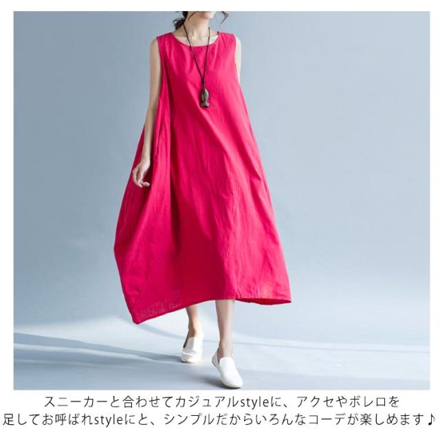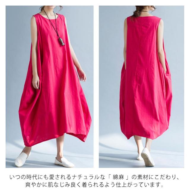 ワンピース ロング マキシ丈 リネンワンピース マキシワンピース 綿麻ワンピース ノースリーブ ロングワンピース 春夏 夏 ワンピ ラウンドネック シンプル ナチュラル 大きサイズ