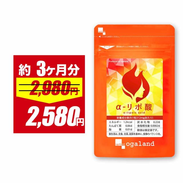 【セール】α- リポ酸(約3ヶ月分)サプリメント 送料無料 コエンザイムQ10 L-オルニチン アミノ酸 美容 健康 ダイエット ビタミンC オーガランド ダイエットサプリ 運動 アクティブ な毎日に _JD _3K 11001