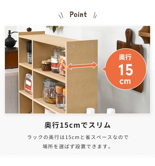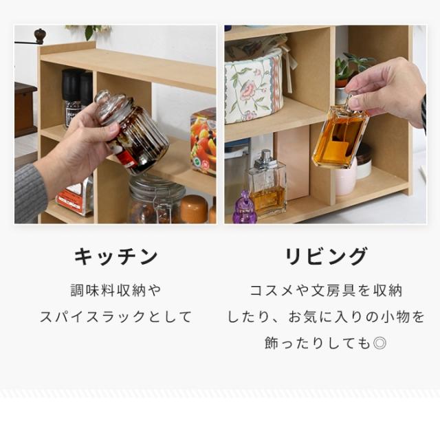 | ・ナチュラルな木製オープンラック ・調味料やスパイスの収納に便利 ・コスメや文房具、小物の収納にも対応 ・奥行約15cmでディスプレイ収納が可能 ・キッチンやデスクなど様々な場所で使えるシンプルデザイン ・サイズ違いと組み合わせておしゃれに使用可能 |