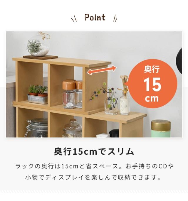 奥行約15cmのゆったり設計で、コスメや文房具を収納したり、CDや小物をディスプレイしながら収納しても◎