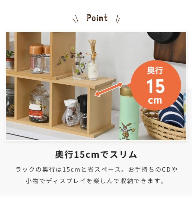 奥行約15cmのゆったり設計で、コスメや文房具を収納したり、CDや小物をディスプレイしながら収納しても◎
