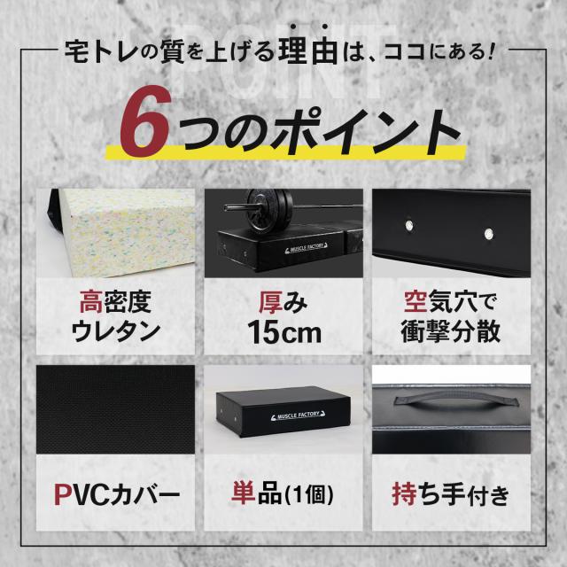 【高密度ウレタンで衝撃吸収】圧縮した高密度ウレタン素材がバーベルやダンベルの衝撃をしっかり吸収。沈み込みすぎず安定したクッション性で、フォームを崩さず安全にトレーニングが行えます。