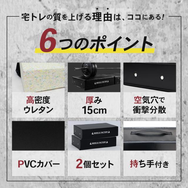 ドロップマット 40×60cm 厚さ15cm 防音 衝撃吸収 バーベル ダンベル 圧縮ウレタン PVCレザー デッドリフト 床保護 筋トレ トレーニング ホームジム 2個セット