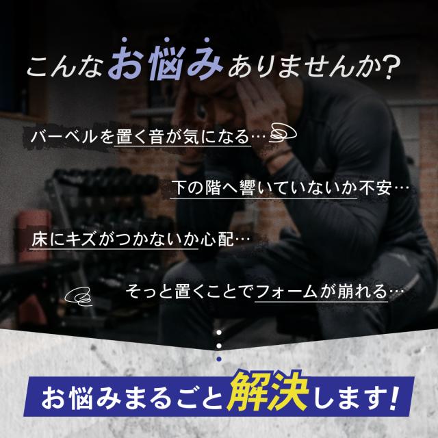 衝撃も騒音も気にせず、集中できるトレーニング環境へ。自宅でもバーベルやダンベルを使って鍛えたい方におすすめの、衝撃を吸収するドロップマットです。
