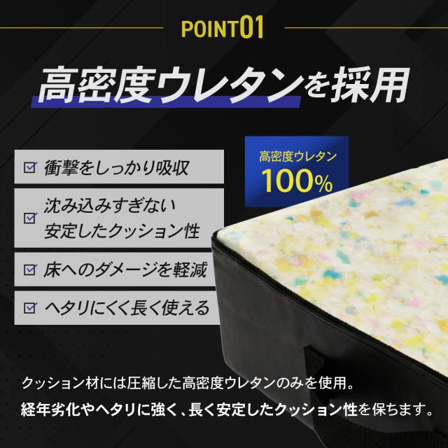 【高密度ウレタンで衝撃吸収】圧縮した高密度ウレタン素材がバーベルやダンベルの衝撃をしっかり吸収。沈み込みすぎず安定したクッション性で、フォームを崩さず安全にトレーニングが行えます。