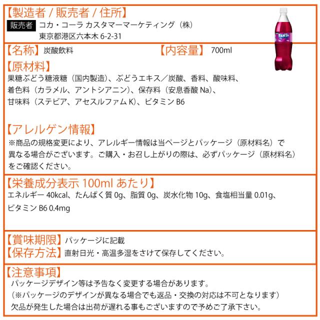 ファンタ グレープ 700ml 40本 (20本×2ケース) PET fanta フレーバー ぶどう ブドウ 炭酸飲料 安心のメーカー直送 日本全国送料無料