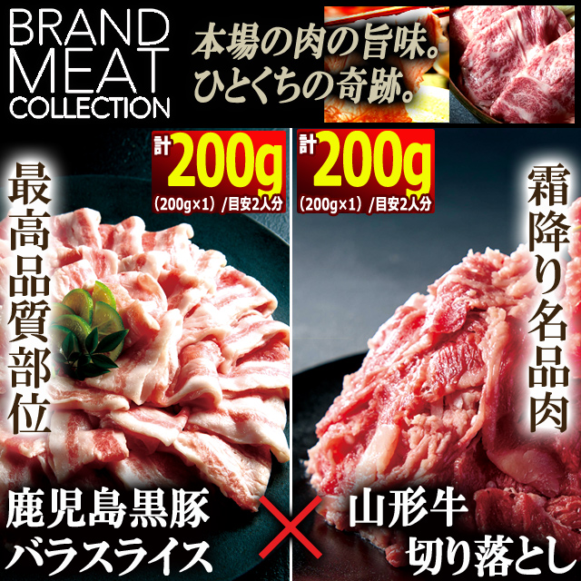 西の横綱鹿児島県産黒豚バラスライス200g&東の雄山形牛切り落とし200g 送料無料 肉の旨味 ブランド肉 おもてなし 通販最安 ギフト ごちそう
