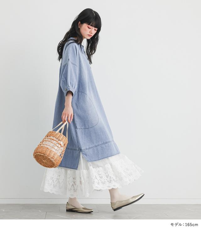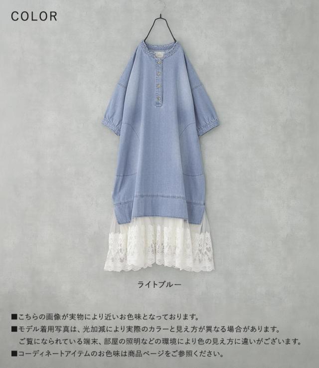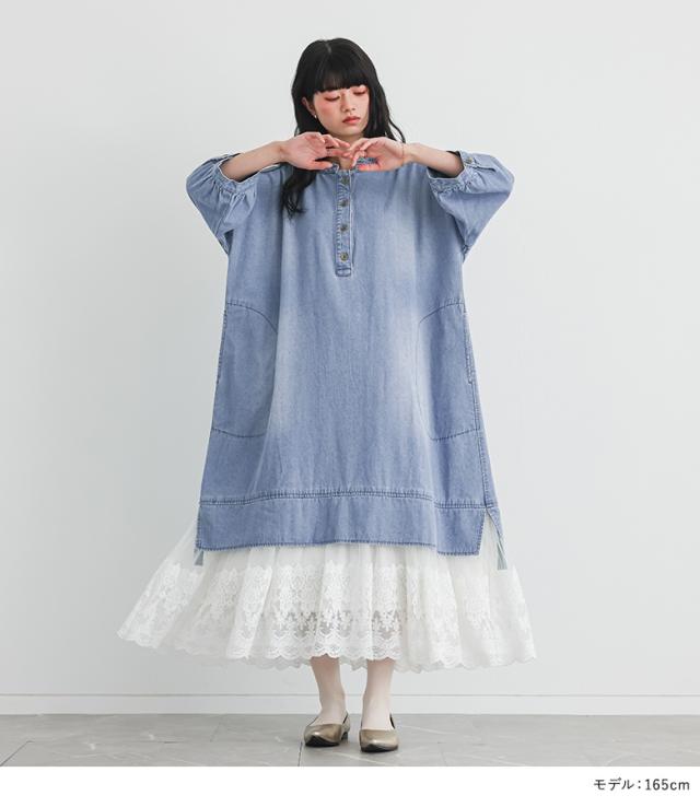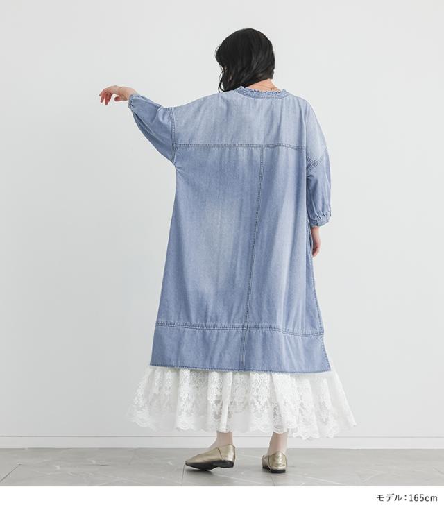 デニム ワンピース 七分袖 レディース 春 夏 ドレス ロングワンピース チュールレース ケミカルレース 綿100% 異素材 ゆったり 【TP】 デニムワンピース マキシワンピース 五分袖 ロング丈 マキシ丈 無地 コットン100% レース チュール ドッキング レイヤード 重ね着 フェイクレイヤード ポケット おうちで洗える 裏地付き カジュアル レトロ クラシカル ナチュラル キレカジ フェミニン ガーリー ゆる 楽ちん 二の腕カバー Sサイズ Mサイズ Lサイズ LLサイズ 3Lサイズ XLサイズ フリーサイズ ぽっちゃり 体型カバー 体形カバー 着痩せ 大きいサイズ プラスサイズ 10代 20代 30代 40代 50代 60代 低身長 高身長 女子会 オフィス 通勤 通学 お買い物 お出掛け 旅行 リゾート おしゃれ お洒落 トレンド 流行 somari imagination ソマリイマジネーション 可愛い系 大人女子 大人可愛い お洒落可愛い 大人カジュアル 上品 きれいめ osharewalker オシャレウォーカー おしゃれうぉーかー ブルー 青 水色 ライトブルー[ID]11dp04v[somari imaginationレースドッキングデニムワンピース]