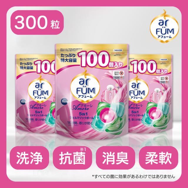 100粒入x3セット アフューム 柔軟剤入り洗剤 特大 詰め替え 大容量 アモーレ ベルガモット ジャスミンの香り 洗濯洗剤 洗浄 ジェルマジックボール 抗菌 部屋干し 消臭 防臭 ボール型洗剤 日本製