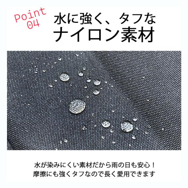 ・軽量で耐久性もあるナイロン素材は水にも強いから雨の日も安心です。
