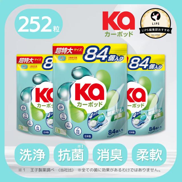 84粒入x3セット カーポッド 部屋干しEX 柔軟剤入り洗剤 特大 大容量 詰め替え 洗濯洗剤 強力洗浄 ジェルマジックボール 洗濯槽防カビ 抗菌 部屋干し 消臭 防臭 生乾き臭撃退 ボール型洗剤 日本製