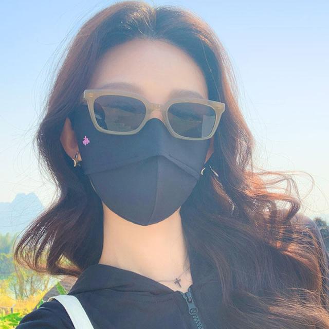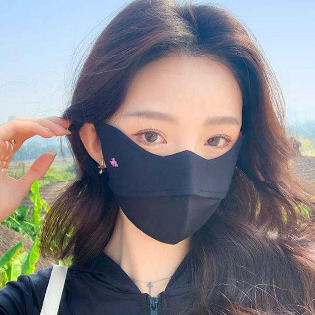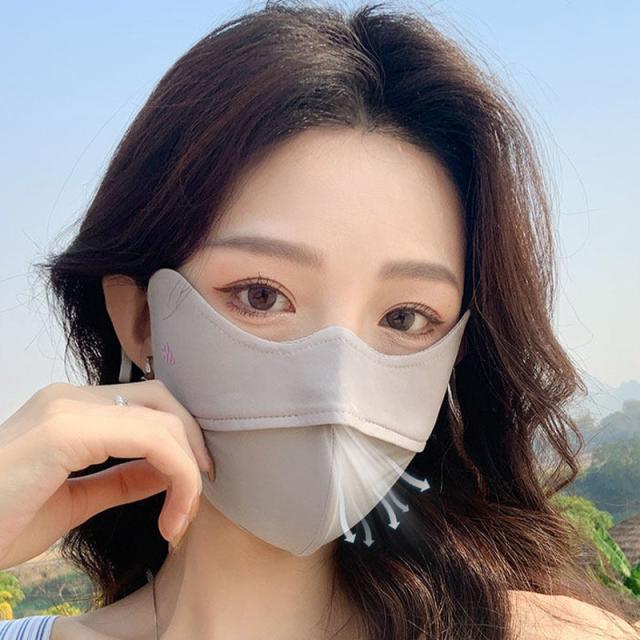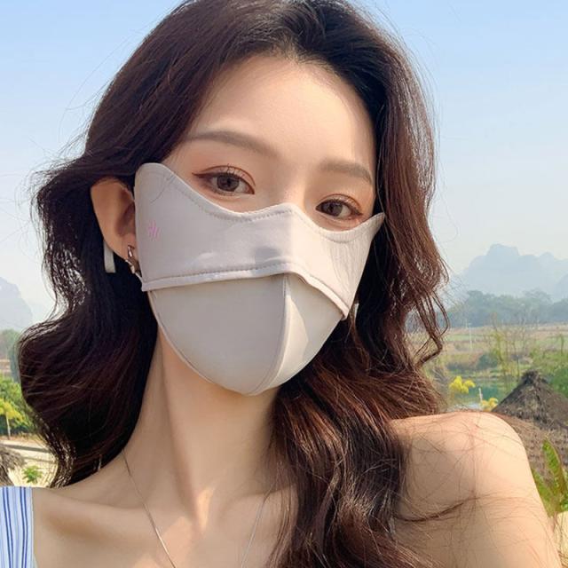 目元から顎まで顔全体をカバーしてくる大きめマスク、日焼け防止対策にバッチリ。