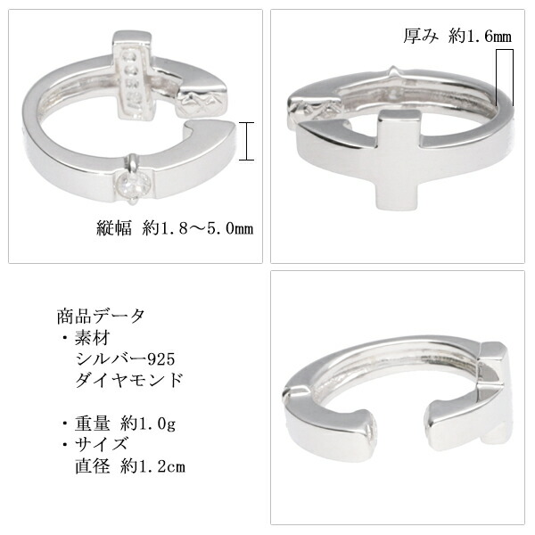 イヤーカフ イヤーカフス メンズ レディース シルバー シルバー925 ピアス シンプル ダイヤモンド 十字架【新宿 銀の蔵】
