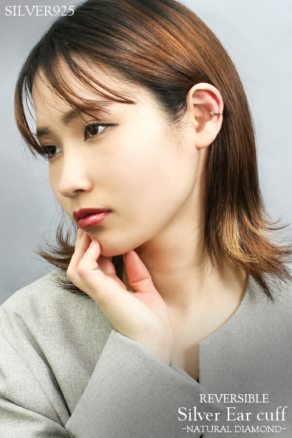 ダイヤ イン リバーシブル クロス シルバーイヤーカフ (1P/片耳用)