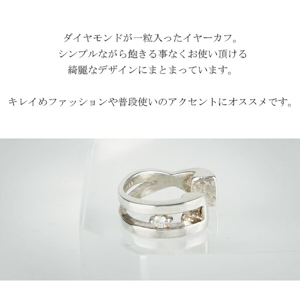 ダイヤ入り シルバーイヤーカフ 1P 片耳用 シルバー925 メンズ イヤーカフス イヤカフ ノンホールピアス イヤリング ダイヤモンド 天然