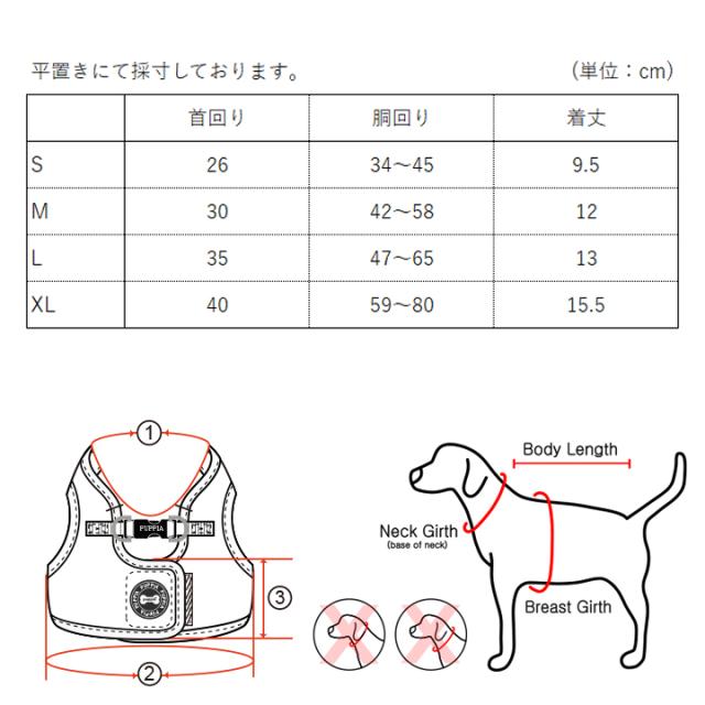 【XLサイズ】首回り:40cm/胴回り:59~80cm/着丈:15.5cm
