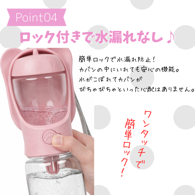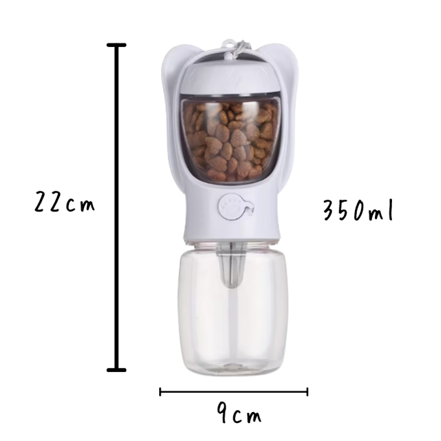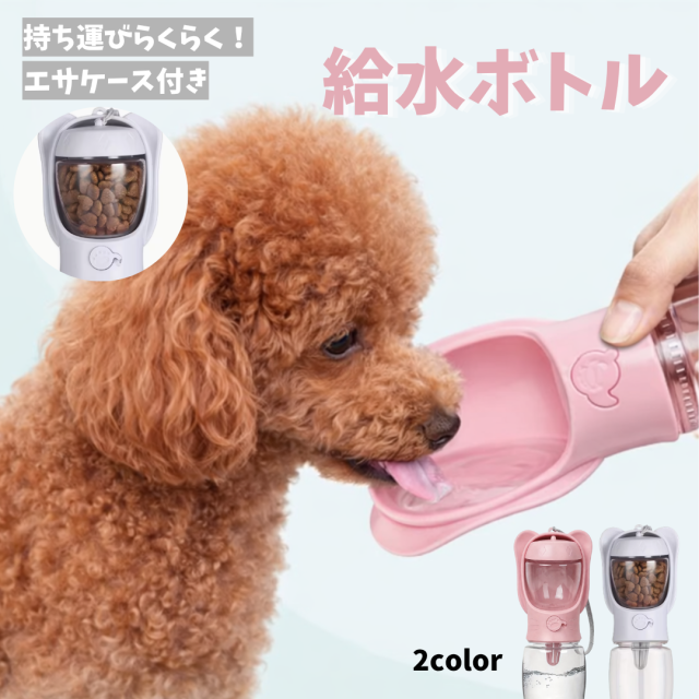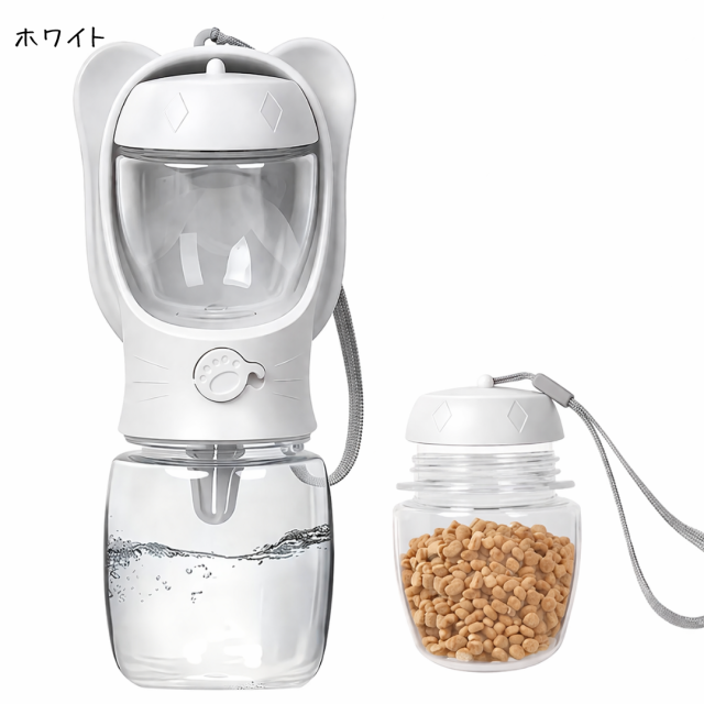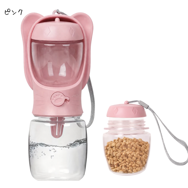 犬 給水ボトル ペット 水筒 エサ入れ付き 散歩 ロック付き 携帯水筒 ごはん ペットボトル 給水機 水飲み ボトル 持ち運び 軽い 350ml 携帯用 猫 ウォーターボトル 水 ペット用品 犬用品 便利 ホワイト ピンク