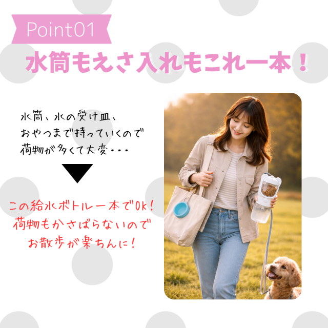 お散歩の荷物を減らせるので持ち運びも楽になります。
