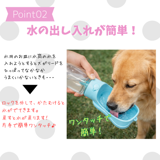 片手で操作できるのでお散歩中でもスムーズに給水できます。