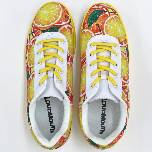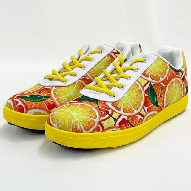 キーワード: Juicy Festa x Yellow フルーツ グレープフルーツ オレンジ ピンク レッド 黄色 桃色 赤色 総柄 マルチカラー 派手な 柄 目立つ 個性的 ローカット スニーカー 練習用 ふだん履き カジュアル ライフスタイル ゴルフ用品 男性用 紳士用 MEN’S MENS’ 女性用 女子用 レディース レディス WOMEN’S WOMENS’ ユニセックス UNISEX 男女共用 男女兼用
