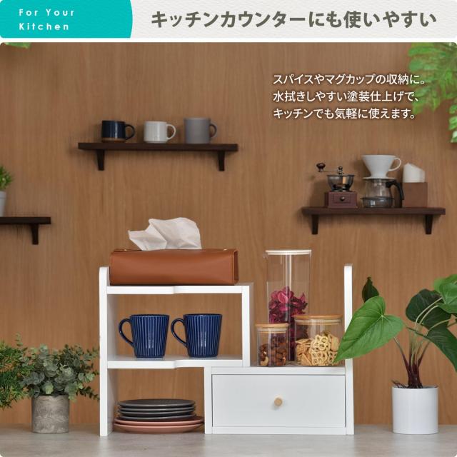 | リビング収納 卓上 カウンター ミニ食器棚 棚 伸縮キッチンラック すき間収納 デスク上 ラック 小物収納 おしゃれ デスクラック スパイスラック |