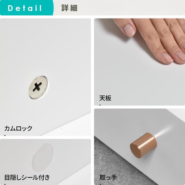 | 天板:約2.5kg(×2) 棚板:約2.5kg 引出し:約1.5kg=全体約9kg |