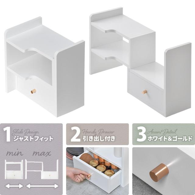 伸縮 卓上ラック 【送料無料】 木製 スパイスラック 調味料ラック デスク上 テーブル上 カウンター上 ミニ収納棚 おしゃれ ホワイト 白