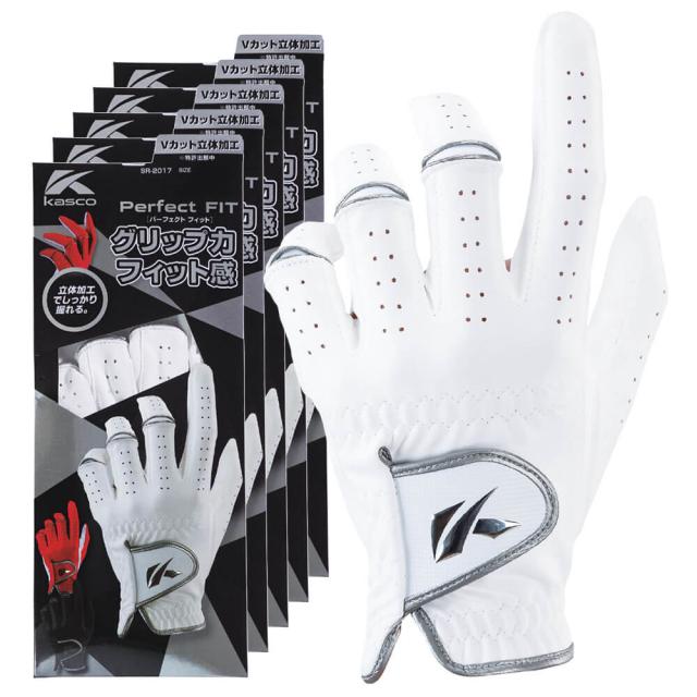 ゴルフグローブ キャスコ メンズ Perfect FIT パーフェクトフィット SR-2017 ホワイト 5枚セット